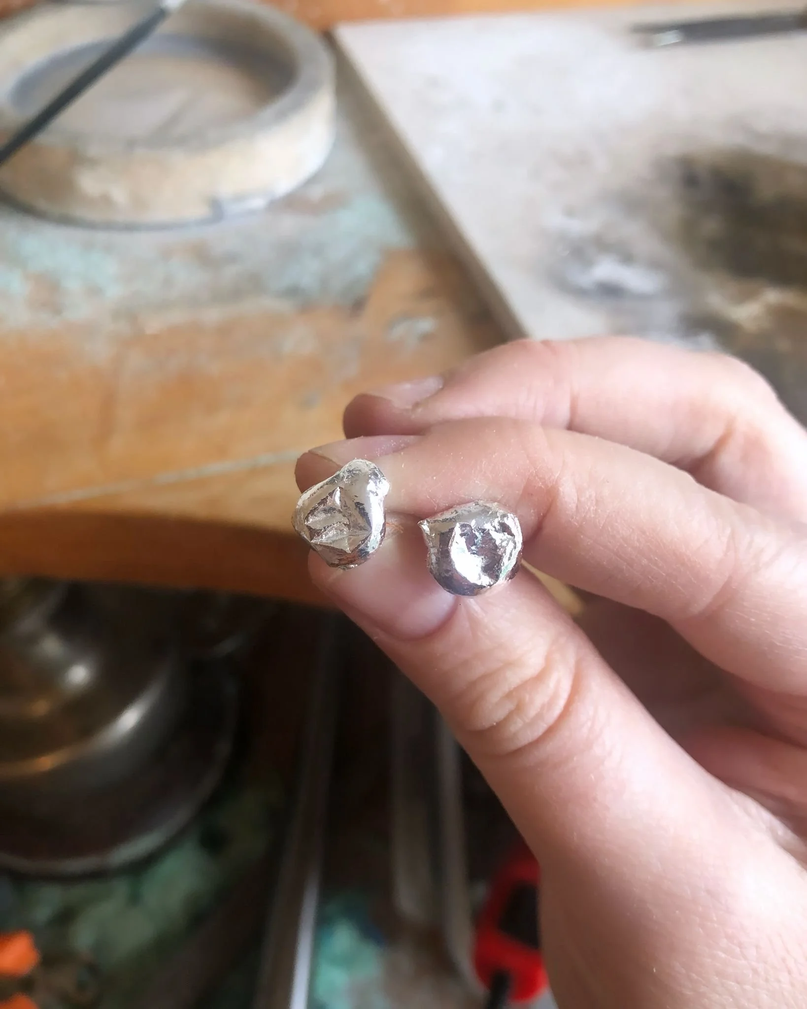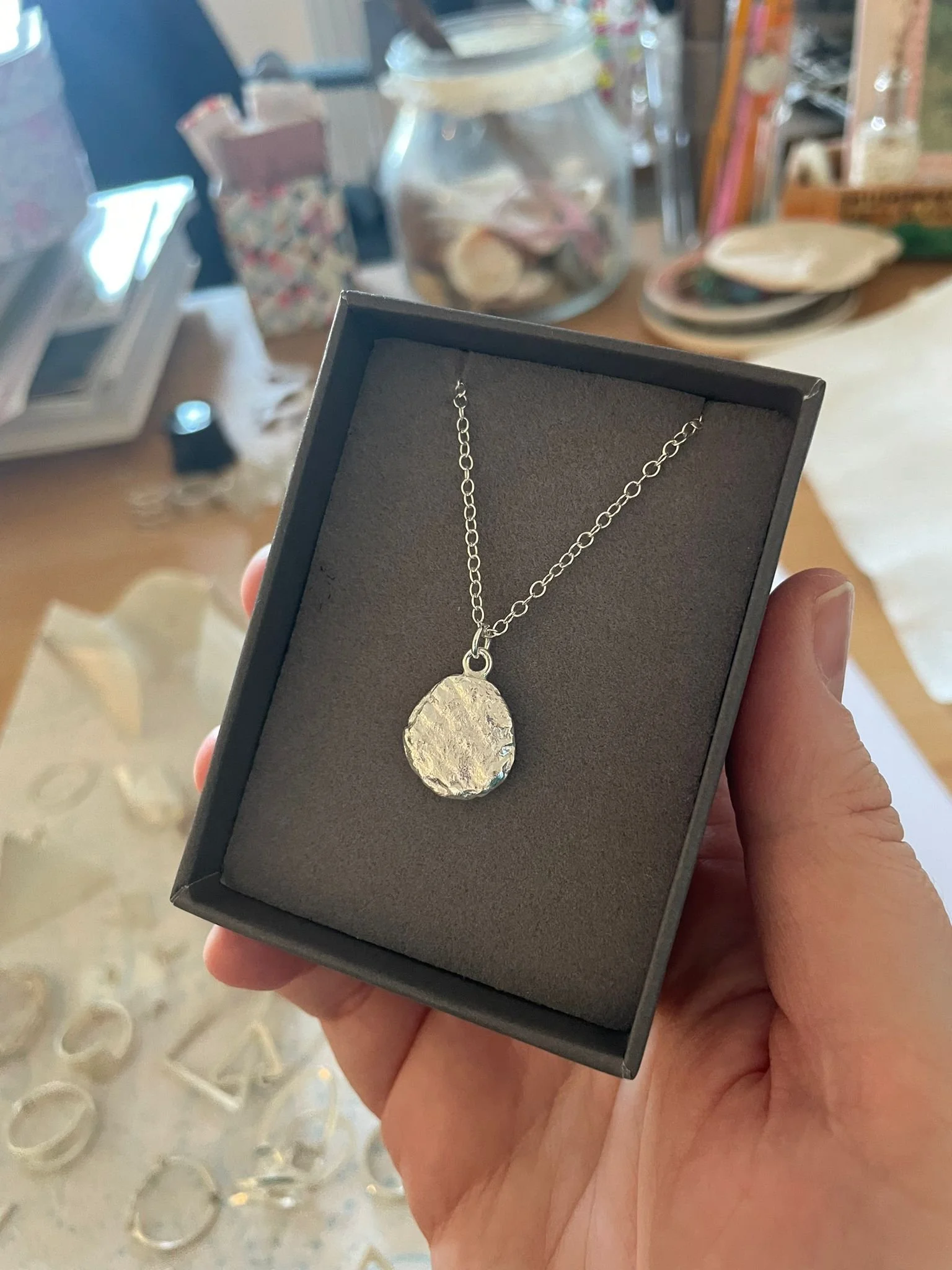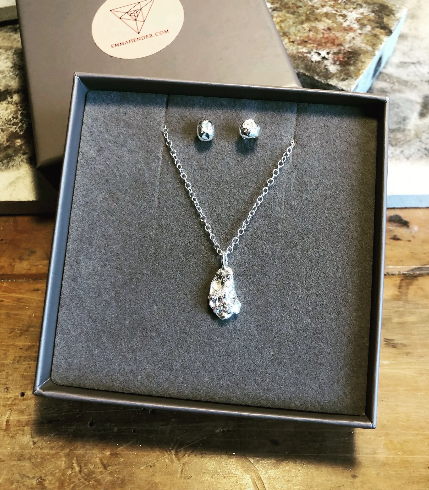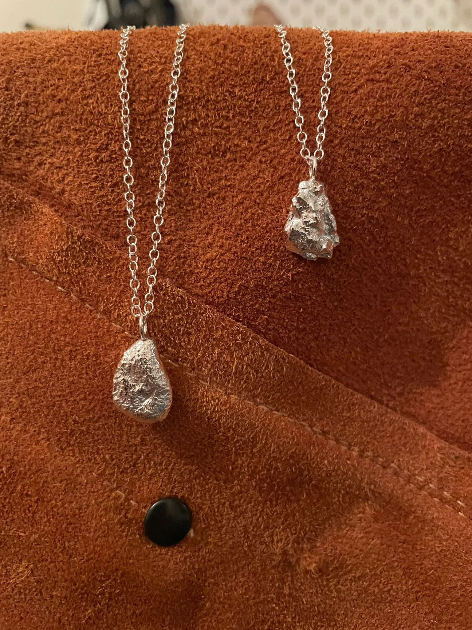 STERLING SILVER CUFF £190.00 SHIELD RING £110.00 SEA PEBBLE STUDS £30.00 LUNA LONG NECKLACE £85.00 SEA PEBBLE PENDANT £45.00